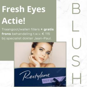 Traangoten oftewel wallen worden opgevuld met fillers. Deze specialistische behandeling bij Blush wordt gedaan door dokter Jean-Paul. Als extra krijg je van ons een Medik8 EYE serum cadeau!