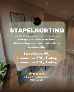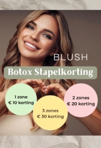 Geniet van stapelkorting in Best en Oss bij alle merken botox: bij 2 zones € 20 euro korting op het totaal en bij 3 zones € 30 euro voordeel.